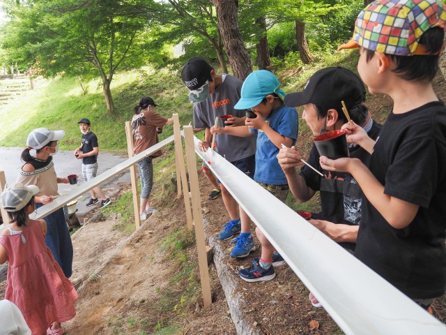 あつい夏にぴったりの屋外流しそうめん体験!センターハウス横に2レーンの流しそうめん台があります。